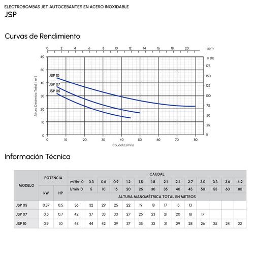 Bomba de Agua Jet Autocebante en Acero Inoxidable de 0.5 a 1 Hp, Pearl Descargar Ficha Técnica Descargar Manual Especificaciones: Caudal Max: 80 ...