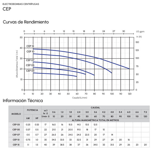 PearlBomba de Agua Centrífuga Serie CEP de 0.5 a 1.5 Hp, Pearl Descargar Ficha Técnica Descargar Manual Descripción: Caudal Max.: 70 a 120 Lpm Altura ...